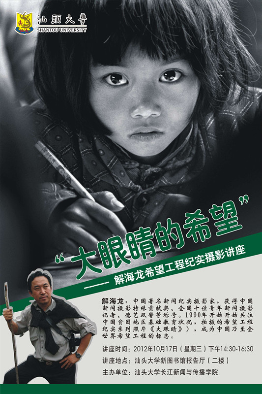 讲座名称:《大眼睛的希望—-解海龙希望工程纪实摄影讲座》