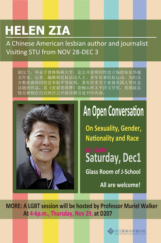 美国知名华裔女作家、记者、编辑和民权活动人士Helen Zia(谢汉兰)将与大家就LGBT(同性恋者)话题进行交流讨论。