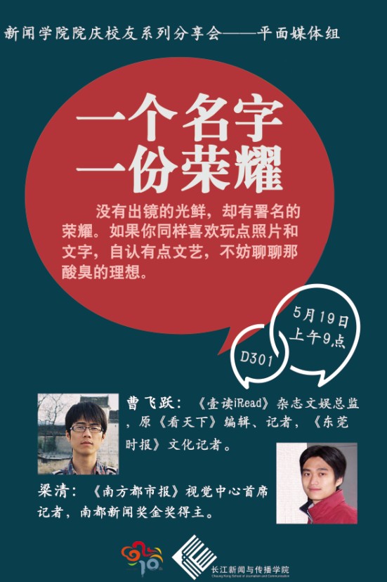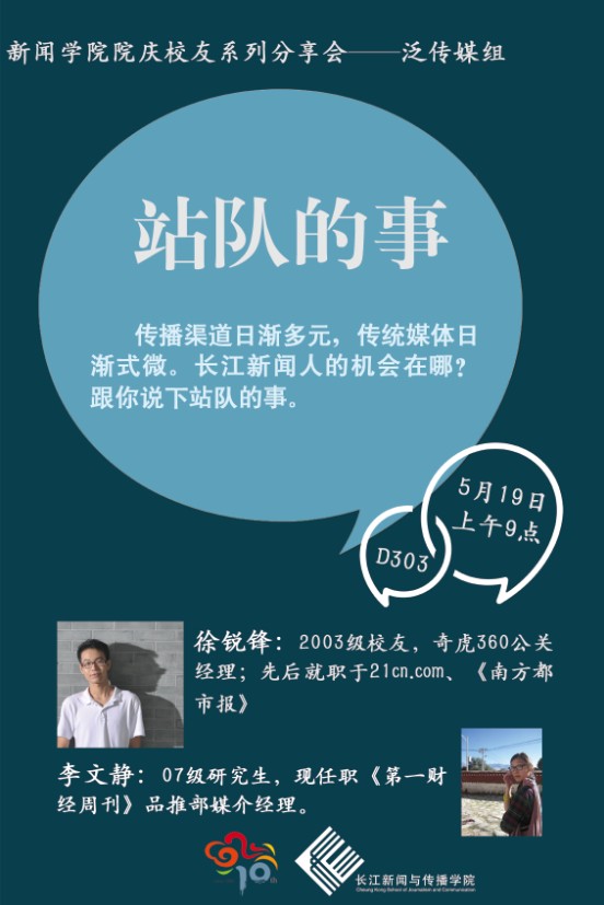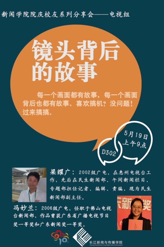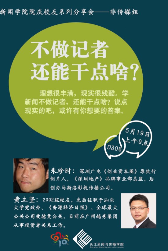 本周日(19日)早上9点开始,我院将有4场优秀校友分享会,分别是: