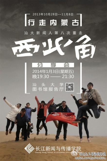 第八次重走中国西北角分享会即将举行,届时将邀请来自内蒙古、北京神秘嘉宾及本地媒体记者出席分享会。欢迎全校师生参加!