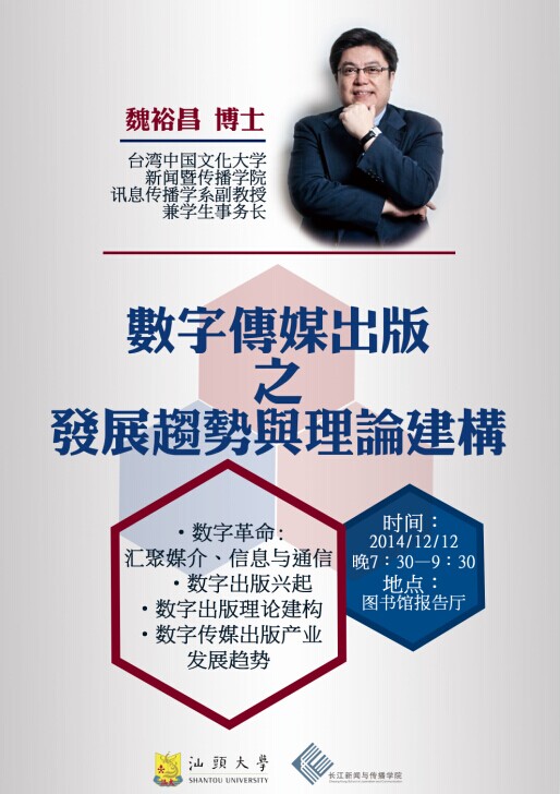 讲座主题:数字传媒出版之发展趋势与理论建构