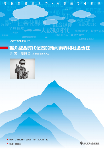 为庆祝11月8日中国记者节,长江新闻与传播学院特邀请业界知名新闻人,举办2015“变化的媒体世界•不变的专业追求”系列讲座,欢迎全校师生参加!