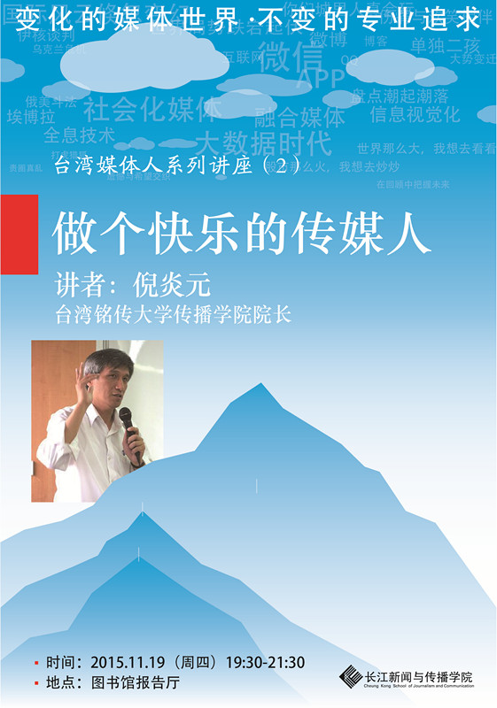 长江新闻与传播学院邀请台湾知名媒体人、著名学者举办台湾媒体人系列讲座,欢迎全校师生参加!