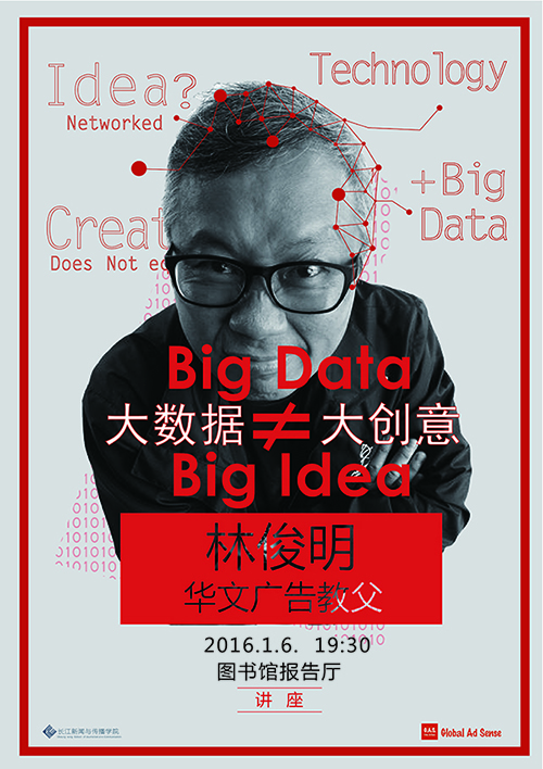 大数据的环境与趋势下,广告传播的创意发展是当前热议的话题,拥有36年广告经验的华文广告教父林俊明将用他的故事和思考,为我们阐述他眼中的创意发展。1月6日晚19:30,图书馆报告厅,一起来感受创意的风采!
