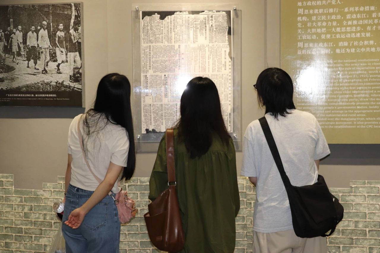 东征军革命史迹陈列馆原是国民革命军东征军两次东征的总指挥部、政治部旧址。陈列馆的一楼和二楼分别展出了第一次和第二次东征革命的相关文献、照片、实物等资料,立体还原了第一次国共合作时期,国共官兵为反帝反封建而讨伐盘踞在东江地区的军阀陈炯明的全部历程。研究生党员们在展板和展品前参观学习,回顾历史,瞻仰革命先烈的丰功伟绩和光辉形象,深感今天幸福生活的来之不易。